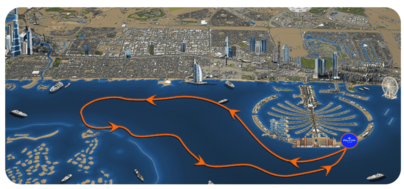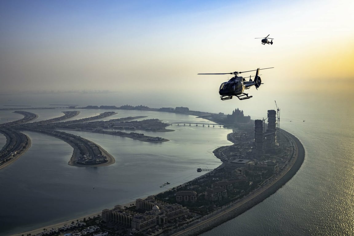 O passeio de helicóptero Pearl Heli Tour decola do Atlantis Hotel na Ilha Palm Jumeirah e segue para Burj Khalifa, a torre mais icônica do mundo, sobrevoando Burj Al Arab, a costa de Dubai e os marcos mais famosos de Dubai. Tempo de voo de 12 minutos.