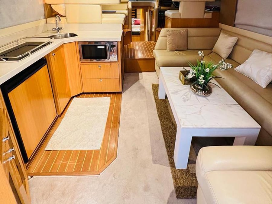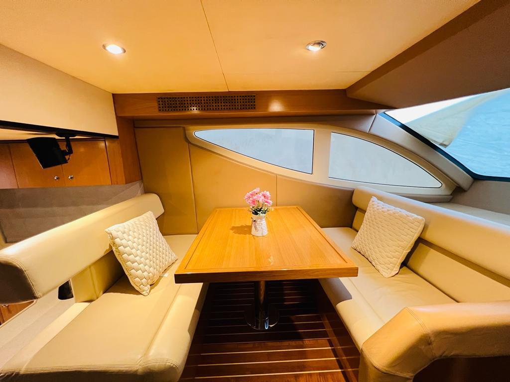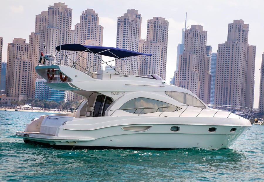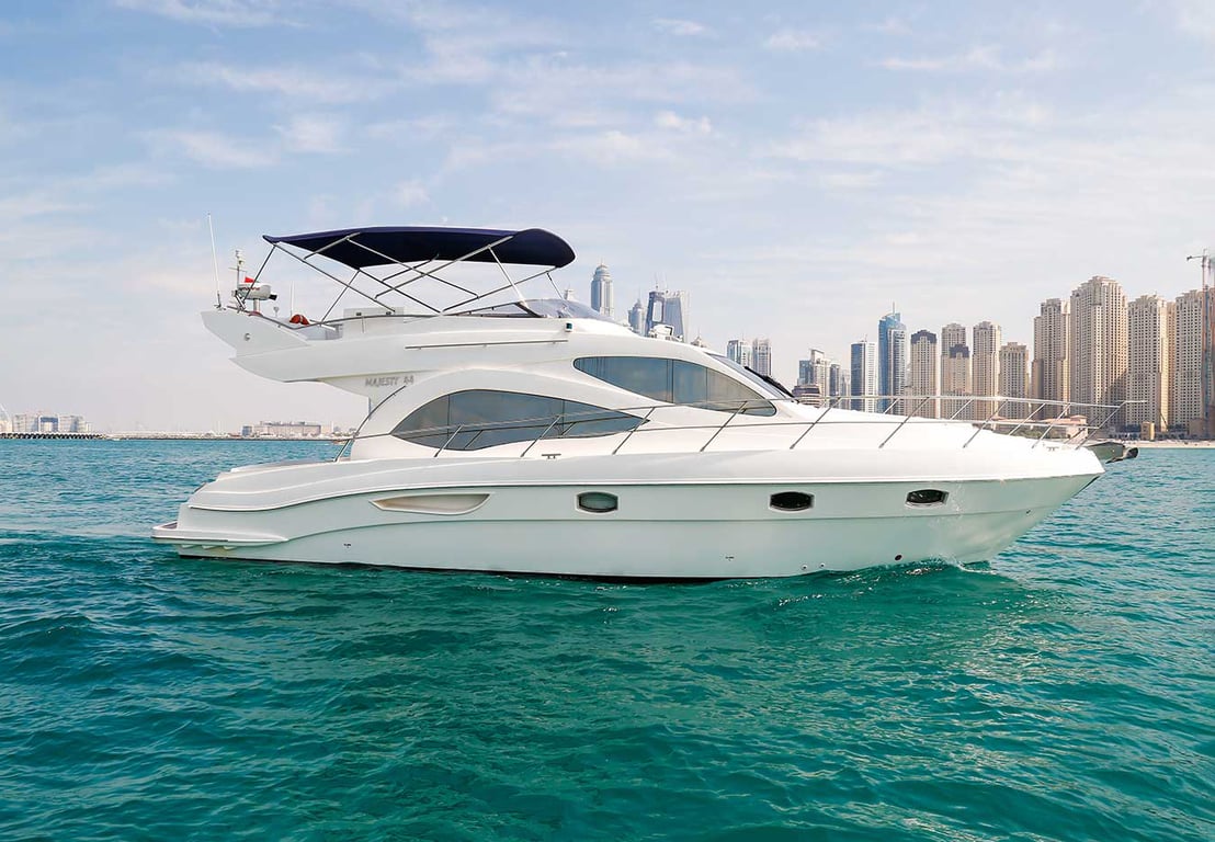 Aluguel de um Majesty 44 FT, você pode explorar o litoral sereno enquanto desfruta da tranquilidade do oceano azul calmo. Esteja você entretendo a família ou desfrutando de alguma solidão pacífica, este iate incorpora a ideologia do estilo de vida de luxo na água.